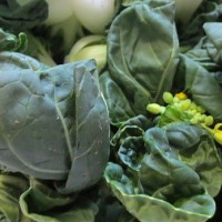 Simmer, and add bok choy/Chinese broccoli and radishes.