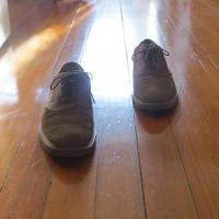 In the doorway between what might as well be two worlds is a pair of shoes. No one, at least no one to the discernible eye, inhabits these shoes. Motionless, they stand uneven sentry on the threshold of rooms. It is a ghostly place, this space that is neither here nor there, a sort of limbo where the path lies before and after. The end of the year approaches, as does the beginning.
