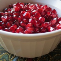 These precious gems are pomegranates, and once removed from their encasement they shine like jewels. The trick to excavating them and not getting your hands stained with their potent color, is to cut the whole fruit in half, then work to remove the seeds in a bowl of water. It just takes a bit of practice, and soon you’ll have a gorgeous pile of antioxidant-rich fruit, ready for snacking, cocktailing, or just sprinkling on melon or salads.