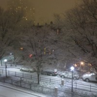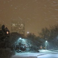 It started as I was walking down Newbury Street. At first I wasn’t sure if that’s what I was really seeing. For the first hour or so, it was just quick white streaks appearing and disappearing out of the corner of my eye. When the snow first started, it evaporated before it hit the ground, and this went on for quite some time. I’d duck into a store, and come back out expecting to find the world painted with white, but it didn’t start sticking until dinner-time. Once it began, however, it did not let up until morning, though there were breaks of rain and sleet, and we would not get the hyped-up foot of snow that Andy had warned me about.