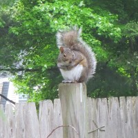 This little guy or gal was caught digging in my hydrangeas outside the bedroom window. I knocked on the pane loudly to scare him/her off, to no avail. In fact, the bold beast turned around and promptly lifted its tufted butt and shook it brazenly in my direction. I opened the window and hissed, and it climbed to the top of the fence post and stared me down. Cheeky thing. My hat is tipped to any creature with the balls to defy me in my own bedroom.