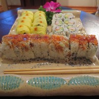 This is the gift from our friend Eileen, put to its intended use as a sushi platter. The beauty of the dish speaks for itself.