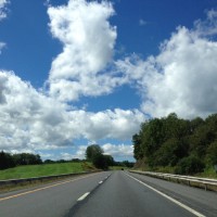 Bright bursts of cumulus clouds explode above the road, hanging low in the sky like cotton puffs on a blanket of blue. It is a brilliant scene, and this is the kind of sky that only the onslaught of early fall affords.