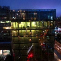 Winking in the cloudy distance, the Empire State Building sends its sparkling spire into the heavens, where it illuminates the misty air like a halo around its head. An empty office building across the way glows warmly against the cool shades of the fallen night. I hope that it’s empty, at least for the sake of any denizens otherwise exposed to my post-shower full-frontal display. I never like showing off to the uninvited, and such a stance is more often than not returned.