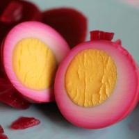 This is not a recipe for everyone, but it would make a great side-dish for Easter, thanks to the way the beet color seeps into the eggs. Once they are cut open, it’s the sort of combination that doesn’t seem real for something you can eat, but there it is, a wondrous collision of hot pink and sunny egg-yolk yellow.