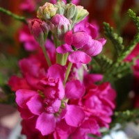 A simple bouquet for your midday contemplation, in hot pink and evergreen.