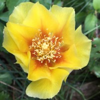 It’s that time of the year again, and as usual I almost missed it. This bloom would have gone unnoticed had Andy not alerted me to the fact that he saw it when mowing the lawn last week. It is the blossom of the prickly pear cactus that has survived on our South-facing bank for a number of years. There it receives full sun and dry sandy soil and little to no pampering or care. Somehow it still throws out these pretty blooms, often to a complete lack of notice.