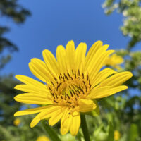 The plant itself makes a bold statement in size and stature, but the flowers are small and dainty, fluttering high above the stems to reach for the sun. They are especially striking against a blue sky.