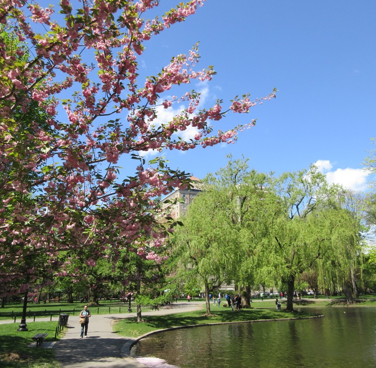 After brunch we walked along Boylston Street, with Andy indulging a few quick shopping stops, before making our way back along the Southwest Corridor walkway. It was also in bloom ~ the bright white of the native American dogwood, with its enchanting ‘blooms’ resting elegantly against leafless bark, and the deep purple of a hybrid lilac, just finishing up its season. Frittilaria nodded its widely varying flowers, and a few tulips opened wide for the sun. Everything was starting over again.