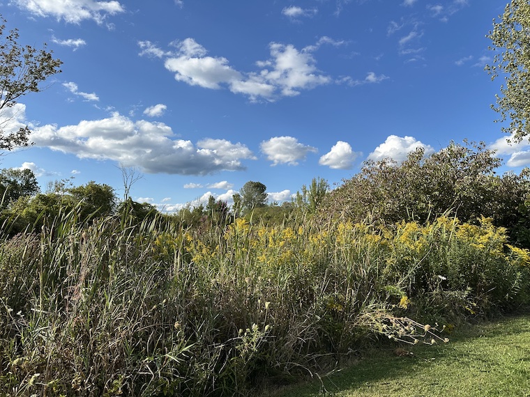 At the top of the hill where he rests, a cool breeze blows beneath the afternoon sun. Clouds roll dramatically across the sky and stalks of goldenrod nod in the distance. A patch of wilderness on the edge of the cemetery is littered with wildflowers still in bloom. While the roses have gone, leaving their hips and thorny warnings, purple and pink blooms have taken their place, gorgeously placed against foliage about to fade from chartreuse to yellow – a reverse return to spring’s original color scheme. Nature loves a full circle.