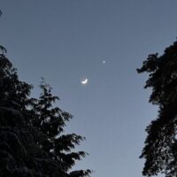 Love and lunacy on full display in the winter sky – this is Venus making motions to kiss the moon on an early February evening. Winter has always held its enchanting delights if you know where and when to look for them. I’m not so well-informed, so this was a happy catch that I didn’t realize I made until after the fact. The Cowboy Junkies wrote a song about this scene for their album ‘Pale Sun, Crescent Moon’.