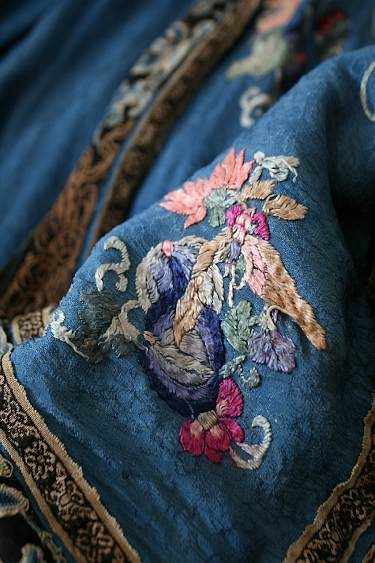 I was also given the beautiful vintage silk dressing gown in these photos from my friend Rob. I take it out when I need a day of decadence, and with the house-bound weather we’ve had of late, it was definitely that time. Coupled with a book, a cup of green tea, and a comfy conversation couch covered in fluffy pillows and a thick, plush blanket, it is a moment of self-indulgence. I know some may dismiss my obsession with robes and clothing as silly, so if this is you, please move on to another site.