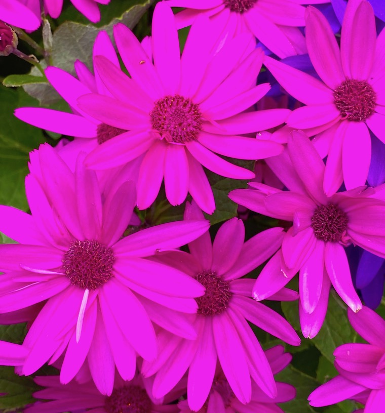 When you need a jolt of inspiration, sometimes a strongly-hued flower will do. These colorful daisies – not sure of variety or scientific name – did that for me when the skies rolled gray and the light dimmed with the lateness of the day. They say more, and say it more eloquently, than these cumbersome words ever could.