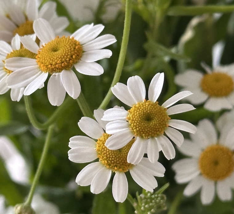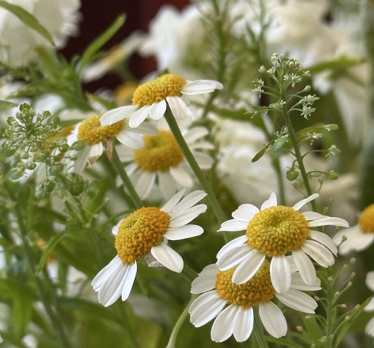 It may seem strange, as it did to me, that white should be the primary color of choice for this winter flower arrangement from a recent gathering, but it worked in ways I didn’t have the vision to see as possible. Far from blending into the snowy background this winter has so voluminously provided, this little bouquet managed to sing its song and cut through the wintry mess with its blend of daisy-like chamomile blooms and sweetly-perfumed stalks of stock. Bright and refreshing, its accents of yellow hearts and green foliage made for more than enough freshness. Proof that the simplest bouquets are often the best bouquets.