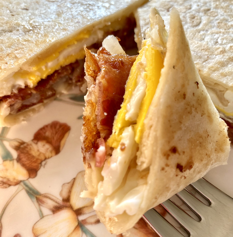 While some parts of my hometown make me rather sad/mad, there are some that make me incredibly happy, and that was in full evidence when I picked up breakfast for my parents from DomAdi’s Deli. One of the specials that morning was this breakfast wrap, named for Bitsy, so whoever Bitsy is I would like to personally thank them for inspiring such deliciousness. A glorious mash-up of scrambled eggs, bacon, American cheese, and a hash brown, it was the perfect wrap with which to start the day.