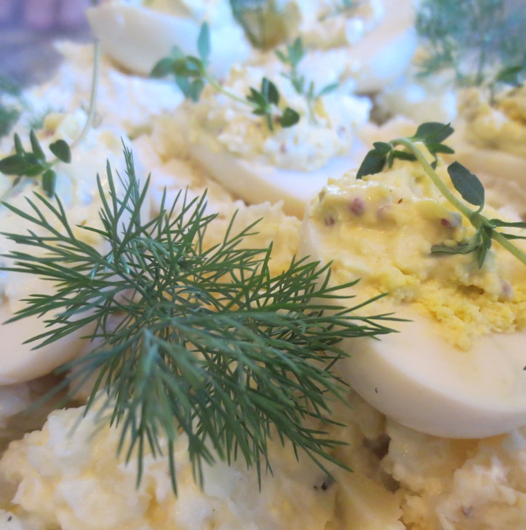 This one was made by Elaine, who brought it to a summer pool gathering. She does a wondrous version as so exquisitely seen here, with lots of hard boiled eggs (another step) and fresh herbs from her garden (hello, lovely dill).