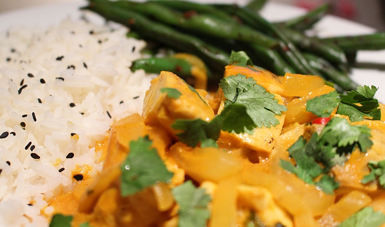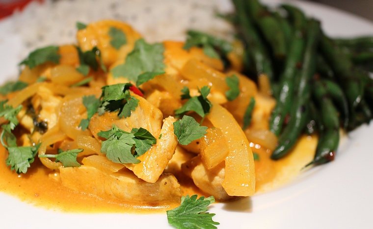 This dish was an eye-opener and educator for me. With it, I learned that curry is not a spice unto itself – it’s actually a combination of several spices – coriander, turmeric and cumin. I always thought curry was, well, curry. (Told you I was a novice in the kitchen.) I also learned how good tamarind and coconut milk tasted together – particularly when topped by fresh cilantro – and how easy and quick it was to cook a piece of white fish (in this case tilapia) in such a simmering sauce.