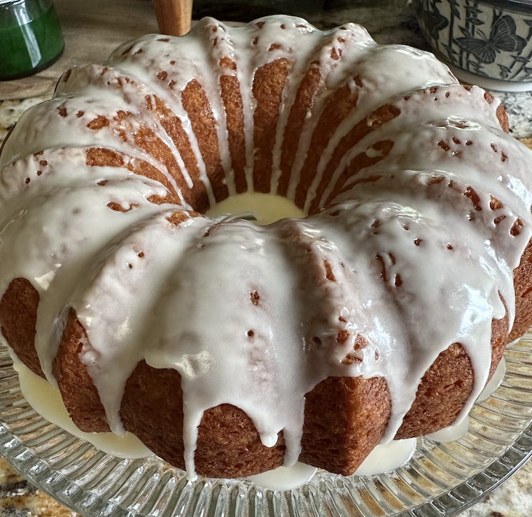 What is it about a bundt cake that makes it seem to taste so much better than any other cake? Is it the visual sumptuousness and simplicity of the shape? The dribble of glaze that said shape provides for such regular rivulets? We eat more than we think with our eyes.