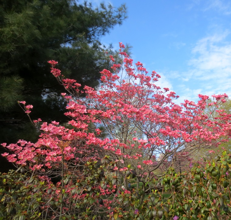 There are still some specimens that remain untouched by the disease, including the ones you see here in Boston. Hallmarks of the Southwest Corridor Park, they showed off the enchanting effect that sets them apart from other dogwoods: the blooms (technically bracts) appear before the foliage leafs out, lending a butterfly-like effect that is the stuff of poetry and painting.