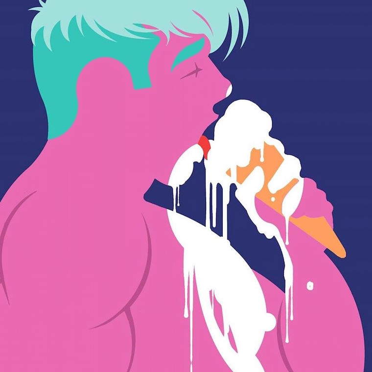 Masterfully utilizing an angular art-deco brilliance, saturated with stunning shades and bursting with dreamy color, Broderick conjures a world of fantasy and pleasure, both hedonistic and haunting. His roots in upstate New York were parched for color and flavor and verve, and as soon as he escaped our doldrums, he came into his own, creating the indelible world of which you see just the smallest glimpse here. Visit his website to see more of his magnificence, and prepare to enter the way life should have been.