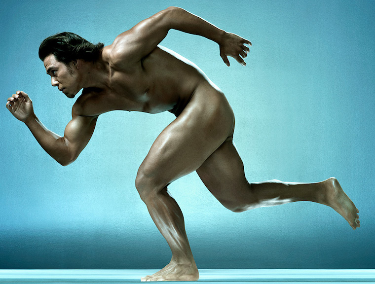 Olympic champion and current commentator for the Winter Olympics, this is Apolo Ohno, and it looks like he skated so fast all his clothes fell off. (Not an easy feat, given those extra-meaty thighs.) Naked Olympians are nothing new in these parts, as witnessed by the clothing-free shenanigans of Gus Kenworthy, Matteo Guarise, Greg Louganis, Evan Lysacek and Michael Phelps.