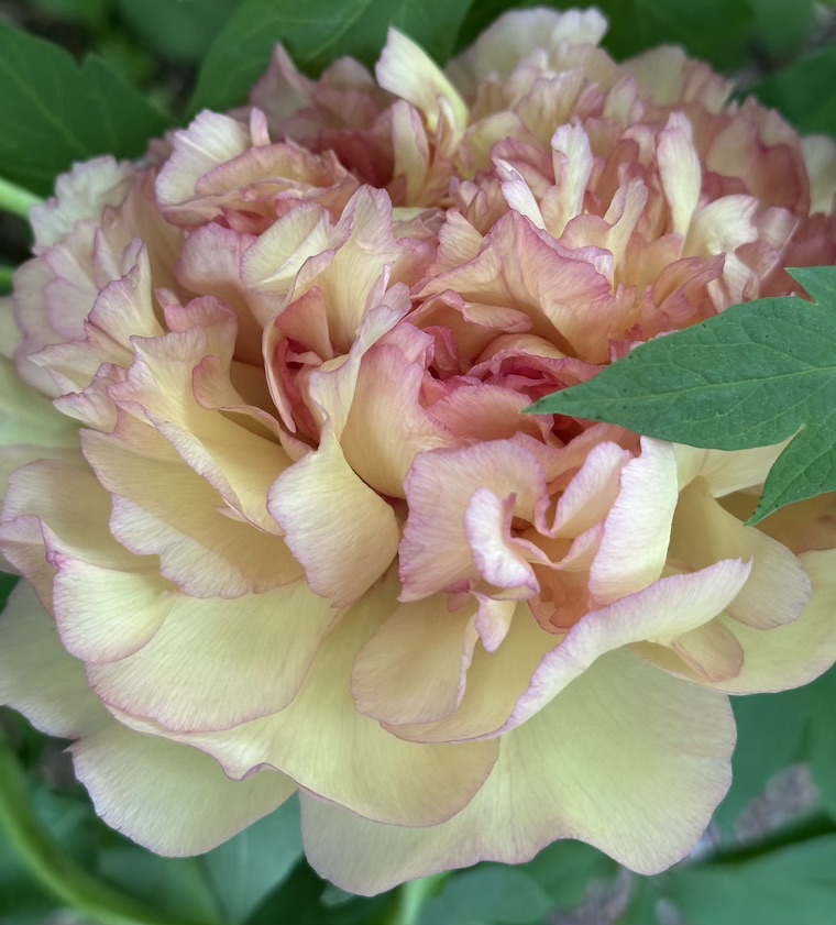 This tree peony, gloriously emitting a fragrance of spiced tea, is situated in a semi-shady nook of the garden, beneath a coral bark maple tree and beside a stand of lady ferns. It is the only flower in the area, and it’s really more a ut flower than one that forms an impressive grouping. We only get two to three blooms per year, and they are so top heavy they fall to the ground if not plucked.