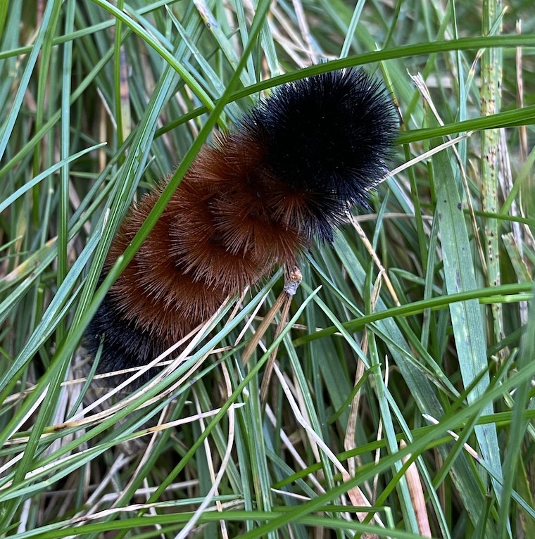 I said about all that needed to be said about the woolly bear caterpillar in this past last year. And I didn’t google anything further to offer more to the rather inane conversation of one. But in the backyard the other day I happened upon this year’s woolly bear, slowly traversing the lawn and hoping not to be stepped on.
