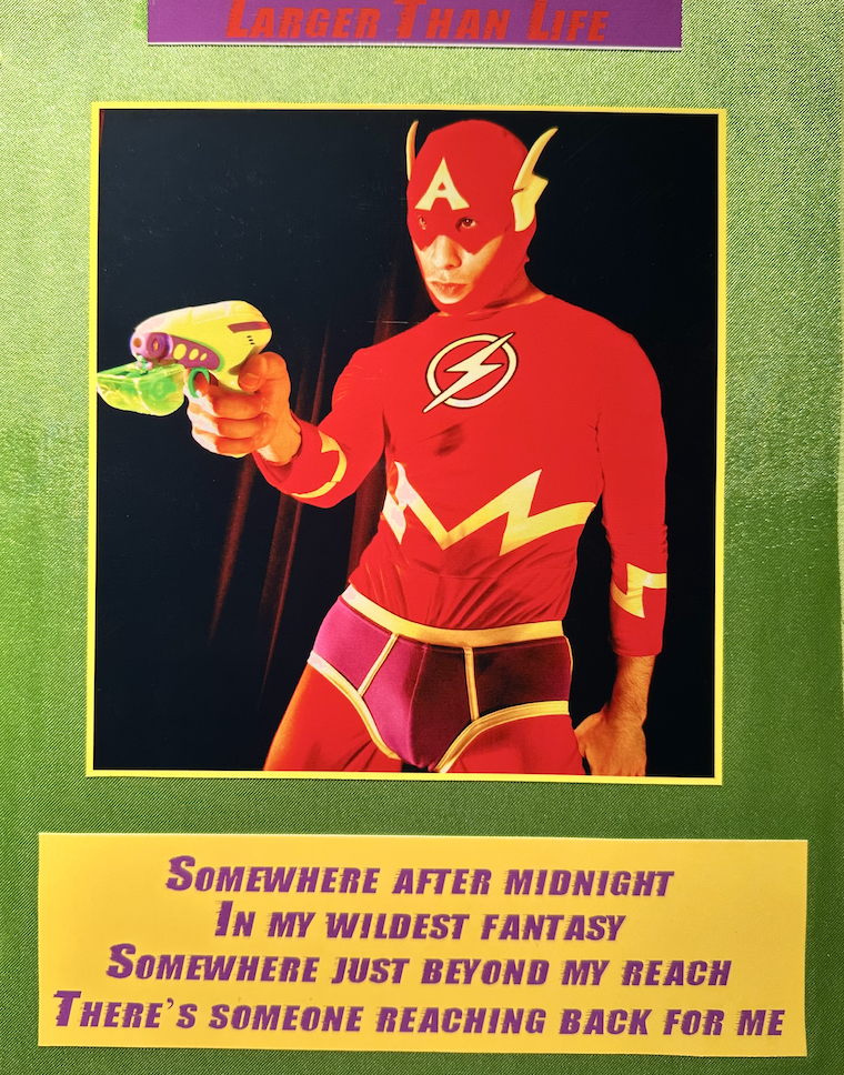 The Divine Diva Tour: A Fairy’s Tale gets its weekendly posting place with this kick-off – an interlude that reveals how much has happened in twenty years. First, the shoddy WordArt and cheap-ass costumes have aged about as well as my abs and hair color. Second, the amateurish posturing and my Zoolander facial contortions are laughable as well. About the only thing that withstands the test of time is this driving power-pop anthem from the 80’s. It gives the ultimate element of cheese-please that puts this into so-bad-it’s-almost-good territory, and that’s the best we’re going to get today.