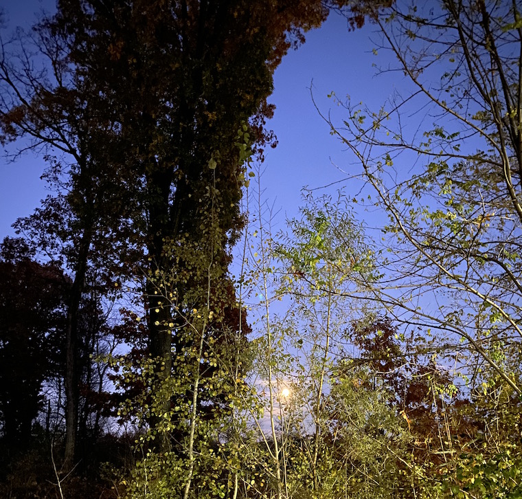 Though it resembles a street light, the warm yellow orb in the middle of this photo is actually the recent full Blue Moon we had on Halloween. It’s usually a toss-up between a full moon or Mercury in retrograde as far as which will wreak the most havoc. Knowing we were in the midst of both, I’ve been keeping quiet at those times when I’m sure I’m right, because no one seems to like someone who’s always right. If I had a Q-Rating it would most certainly not be good. Back to the moon – this Blue Moon – and a song sung by Ella Fitzgerald to warm the not-so-chilly nights we’ve had of late.