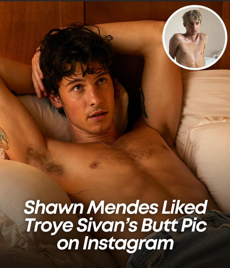 So when something as foolish as this clickbait meme that claims ‘Shawn Mendes Liked Troye Sivan’s Butt Pic on Instagram’ I am grateful for the silly bit of escapism such fantasizing might provide. We’ve featured both of these musicians before – Shawn Mendes in excessive linky posts and poses, and Troye Sivan in other baring/daring pics. (My bet is the reportedly-liked photo is one of the two below. How could it not be?)