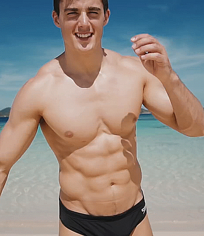 Kicking off this month with the heat of some hunks, here’s a nifty shirtless collection of some gentlemen who have previously graced this site with their lack of clothing. We begin with a beach summer scene featuring perennial Speedo-clad (and unclad) favorite Pietro Boselli. Shine on, summer sun, shine on. And the question remains whether he’s better from the front or the back; judge for yourself with the GIFs on hand.