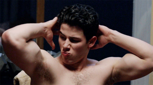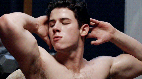 It has, however, already made its mark in the superficial hunk-obsessed landscape of this blog, with the following GIFs of Nick Jonas flexing and posing and showing off his shirtless body because that’s what you do when there’s a murderer on the loose and you’re a hot guy. No stranger to on-screen shirtlessness, or magazine almost-nudity, or sweaty sex scenes, Mr. Jonas pumps his biceps gamely for this one. Of course, in the second episode he is nowhere to be found, and that sort of strip-bait-and-tease is why I don’t watch much television anymore.