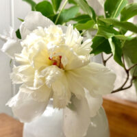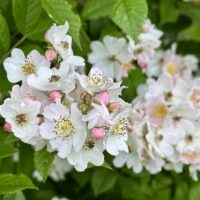 Our day of white flowers comes to a close, as does our second Father’s Day without Dad. At the bottom of the hill where my father rests, a stand of wild white roses has rambled along the edge of the wood. Wild roses remind me of the rose shrub that stood at the edge of my childhood home. It only bloomed once a year – around this time – when it was covered in single yellow flowers, scented with the softest perfume. The extremely thorny stems made this a maddening rose, not even worth growing in my eyes, but every year it had a week or two of glory, and it signaled the happy arrival of summer, and my youth, where my Dad stood sentinel and guardian of all ills.