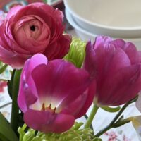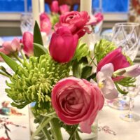 Even the most careful and fastidious among us can lose a bloom in the course of arranging a flower bouquet. When that happens, rather than toss it into the garbage, I’ll seek out a shallow bowl or dish on which to display the bloom. My heart always bleeds a bit for those wayward flowers that get beheaded before they have time to fully open up.