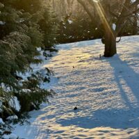 Sunday night, in the dark of mid-winter, light seemingly still glowing from the snow, though I know that could never be. Moonlight, perhaps, the kind that brings out a certain wildness, that would have us dancing naked beneath its glow if it were just a smidge warmer. Perhaps, perhaps, perhaps…