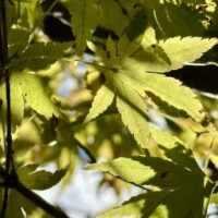 The Japanese coral bark maple provides a year-long focal point of interest, as seen in this moment’s brilliant golden foliage. Its spring show focuses mainly on chartreuse leaves, summer deepens into a darker green, and winter reveals the red bark befitting its namesake. I think I like the spring show the best, but fall is a very close second.