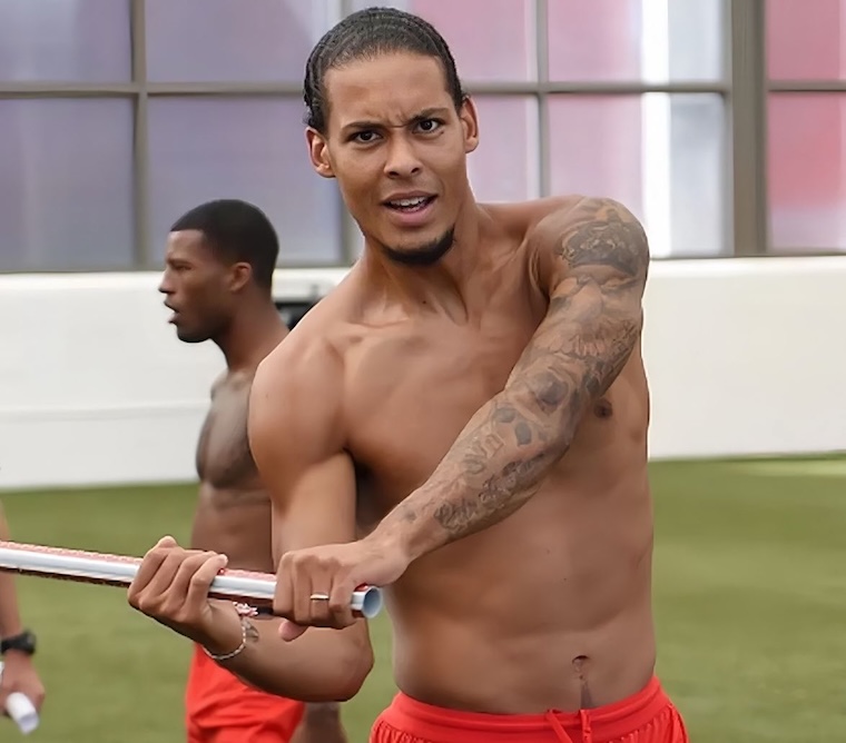 Suzie has been advising on this string of dazzling footballers on the road to the World Cup. This is Virgil van Dijk, a Dutch footballer who captains Premier League club Liverpool and the Netherlands national team. (Do I have this correct, Suzie?) Virgil earns his first Dazzler of the Day, thanks to his talented work as one of the best defenders in the sport.