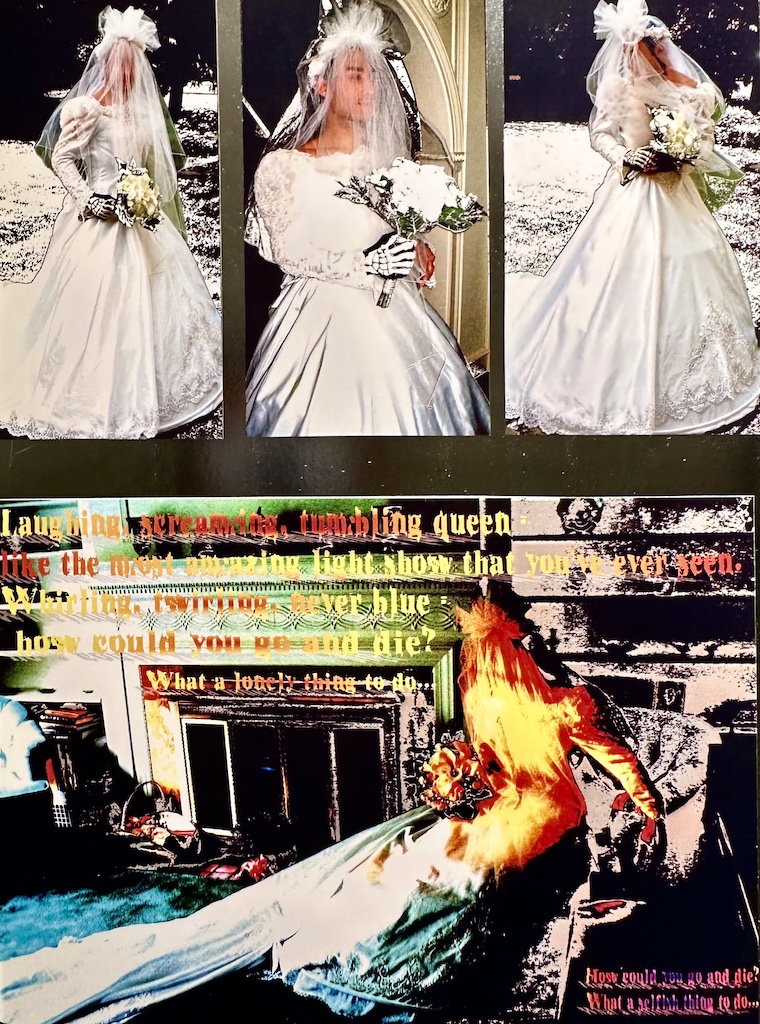 Back to the present day 2025 moment at hand… That was a lot – and a little extra on top of it. It’s ok to laugh at it. Or roll your eyes. Or turn away in disgust. I think I did all three while re-reading it. It was also a singular moment of metaphorical self-destruction, a suicidal gesture to dramatically illustrate the ways we do, at certain points, have to destroy those parts of us that are problematic, both in an intrinsically personal way, as well as on a universal level. No one exists entirely in a bubble, as much as we may sometimes wish we did. It was an end and an exorcism – for all that narcissism, all that vanity, all those false constructs that held me up when I didn’t really have a genuine belief in myself. It was helpful to me then, it got me through the darkest days, and for that I do not apologize or feel shame. We do what we have to do to survive.