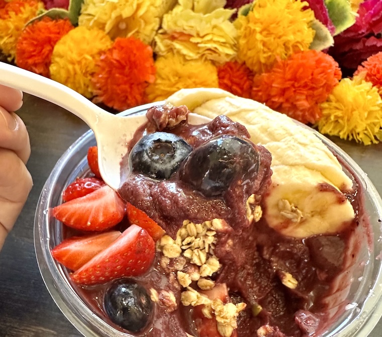 Am I the last person you know to try an acai bowl? My niece and nephew seem to think so, and they are occasionally correct. It was Noah who mentioned them to me as we passed a store offering fruit bowls for lunch. Then I started asking around and it seems everyone has tried an acai bowl, and has been eating them for years. It’s not that I was never aware of them, they just existed on the periphery of my food journey – something like chicken wings or Orange Julius, ever-present but not a part of my life.