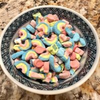 This gimmicky version was all marshmallows – which made for a cloying bowl of sweetness – proof that too much of a good thing is sometimes too much. While the marshmallows are indeed the best part of a traditional Lucky Charms bowl, having them alone proved an embarrassment of riches. It also turned out that all the milk in the house was bad, so Andy suggested I just use Half & Half in them, which didn’t really tone down the richness much.