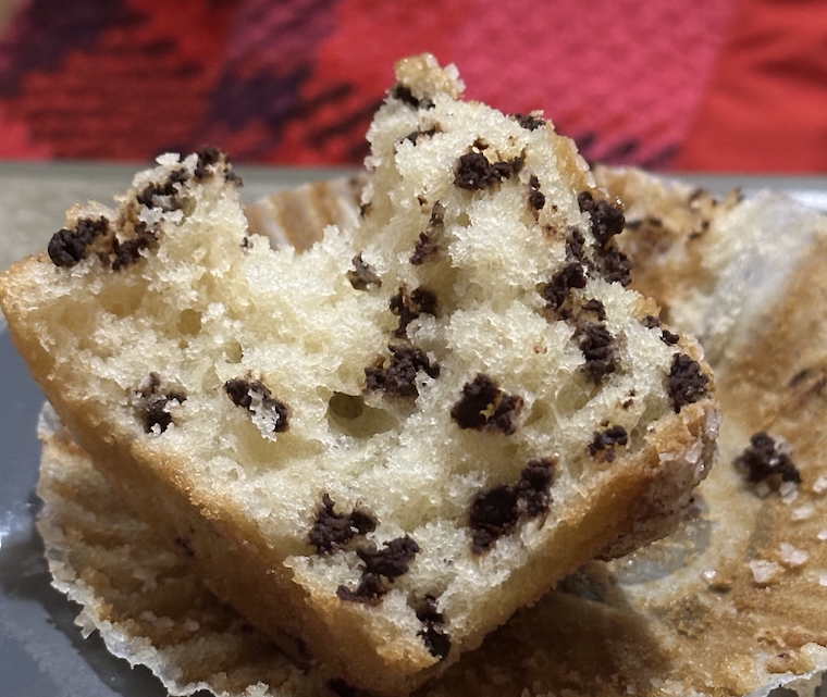 It stands as an ideal image of the perfect ratio of chips to muffin, and the almost-scientifically-even spacing and dispersal on display here is a thing of wonder and beauty. Behold its prettiness, as life doesn’t often approach this kind of perfection, especially during the holiday madness, and this makes me extremely happy. As did eating every bite of this chocolate chip muffin.