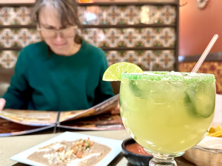 In service of some badly-needed levity on the internet side of life, here is a green rim job on a mockarita from a recent inspirational dinner out as Suzie and I prepare a Mexican-themed dinner fiesta. It’s this year’s take on the ‘Suzette’s Feast’ dinner we threw last winter – a way to make it through the second half of winter, and a Mexican meal feels especially cozy right now.