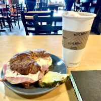 This glorious concoction of eggs, ham, bacon, cheese and mayonnaise on a toasted croissant is my occasional breakfast indulgence on a weekend or holiday (or both as happened yesterday morning for Valentine’s Day). It’s one of the delectable edibles on offer at my favorite cafe – Professor Java’s.