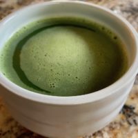 Following recommendations from various online sources, I sifted a small amount of matcha, then added a coupe of ounces of water that had been boiled and cold slightly. Using quick stirring motions in an ‘M’ or ‘Z’ pattern, I mixed in the matcha powder with the water until there were no discernible lumps (also why the sifting is an important part of the process).