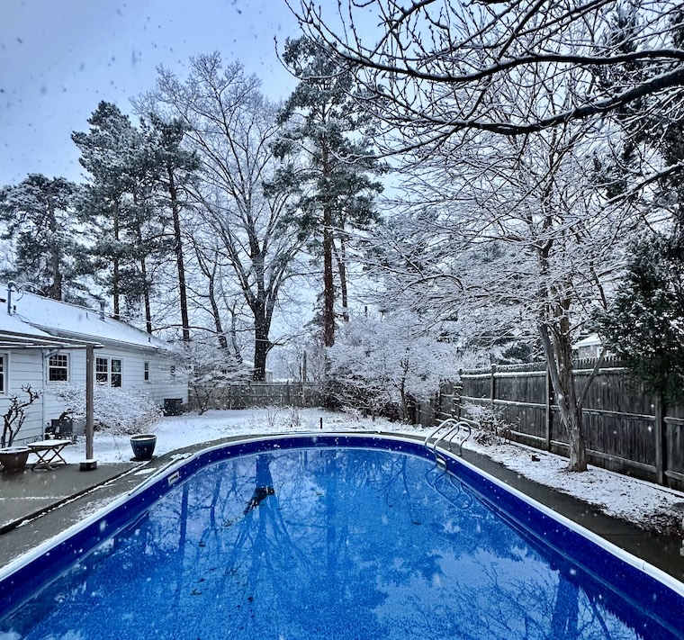 Andy had already opened up the pool, and it’s probably colder than the 47 degrees it was at before the drop in temps. Still, it’s nice to see some blue, even if it’s not in the sky.