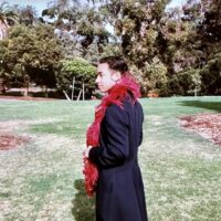 For my sophomore slump holiday card effort, I ricocheted from the bondage-heavy shock-jock scene of the first to a more somber and contemplative pose as seen below. As soon as the first card set up an element of expectation for the follow-up, I knew I’d have to do something entirely different rather than attempting something to top the untoppable. Cue this calm shot from a trip to the green hills of San Diego, as captured by my brother.