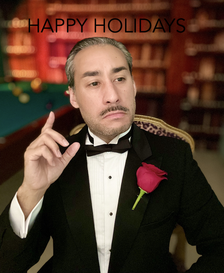 Not that I didn’t sometimes have a softer spot for more sentimental fare, as evidenced by the cards that featured more family-oriented and sweeter fare, such as the 2010 ‘Wedding Card‘ from the year we got married, the easy-way-out redux of a childhood photo for 2013’s ‘Baby Brothers Ilagan‘, and the touching ‘Family Affair‘ recreation with Mom and Dad for 2020. Also of tender note was 2022’s tribute to my godson Jaxon which included a play on ‘The Godfather‘, as well as 2011’s ‘Uncle Al’s Radio Flyer‘ which featured the Ilagan twins, Emi and Noah.