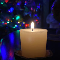 The flickering candle flames that dance and wave like little oceans of light.