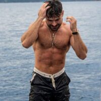 While the world continues in its downward spiral, a spell of a post to bring noting but gratuitous shirtlessness and some brief semi-naked male celebrities for your viewing escapism and pleasure. We begin with a blog favorite, Chris Salvatore, who appeared not in just one Dazzler of the Day, but also this encore performance since his talent demanded it. He’s currently fielding ideas for locations for his 2024 calendar, so send some inspiration his way.