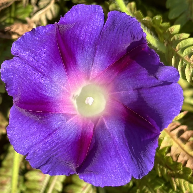 Back to the morning glory. It is the old-fashioned blue variety that I have always favored, and of course that’s the variety that hasn’t grown for me. Instead these powerhouse pops of strident color, what everyone thinks embodies me, have been reseeding and creeping into the garden no matter how many times I pull them out. When they surprise me with a late-season bloom, I’m usually glad a few get through.